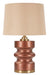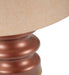 Caratterizzata da una base dal profilo ondulato e una finitura calda, la lampada presenta anche dettagli dorati che catturano l'attenzione. Il suo paralume neutro diffonde una luce soffusa, creando un'atmosfera accogliente e serena.